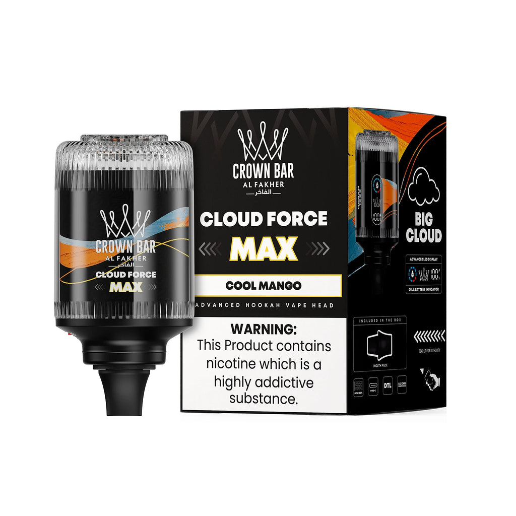 Al Fakher Crown Bar Cloud Force Max 50K is a dual purpose vape. You can put it on top of your hookah or vape from it directly. With up to 50K puffs, this is the newest product from Al Fakher to elevate your hookah sessions at home or on the go.