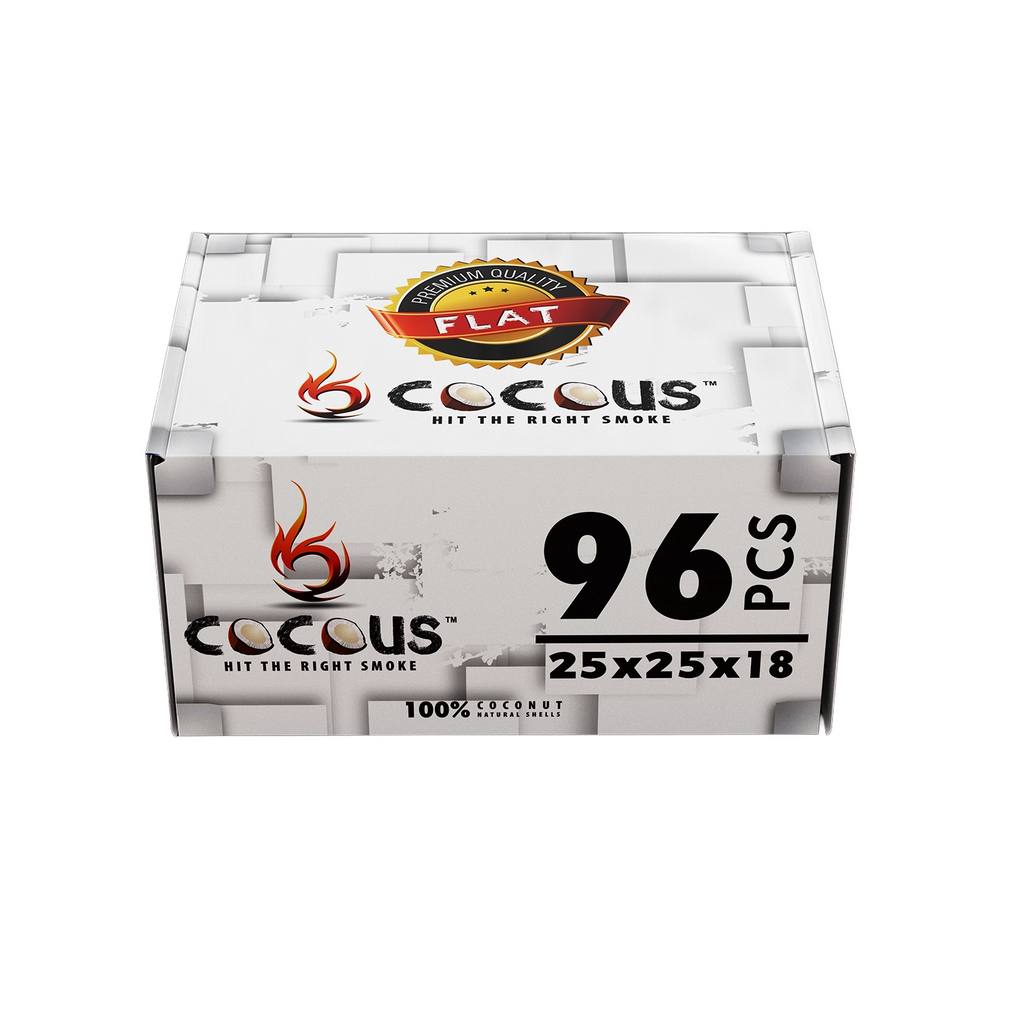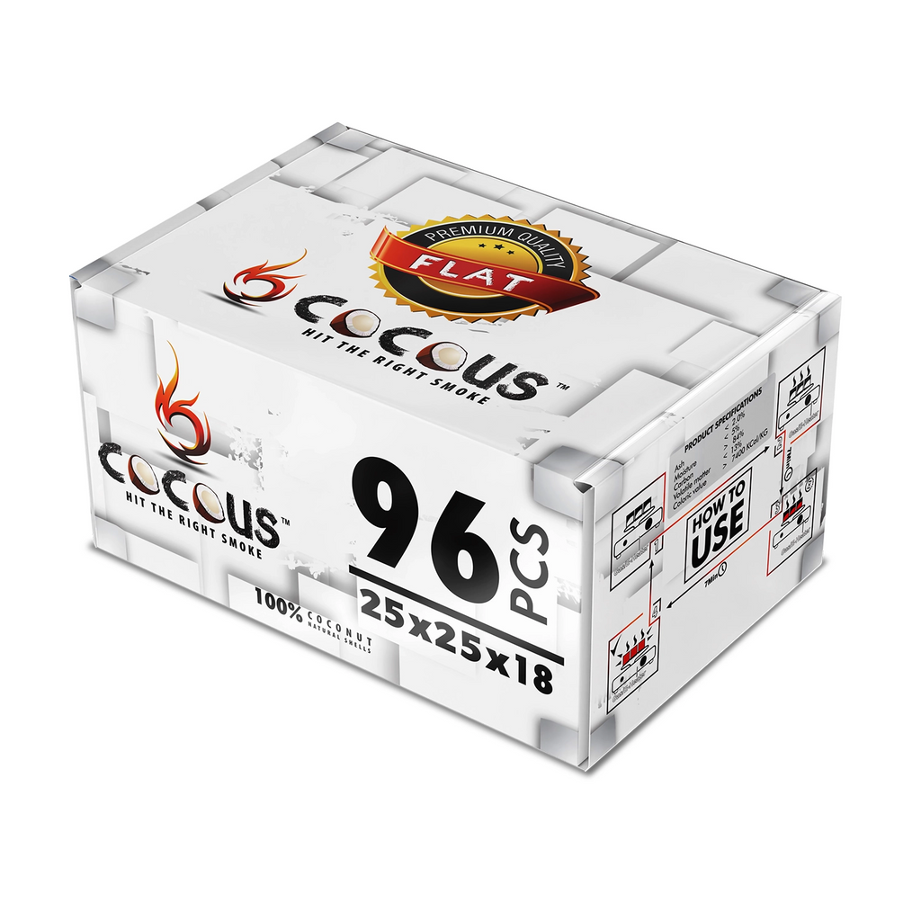 Cocous Charcoal Flat coconut briquettes are 96 Pieces each Box – 2.2 LBS (1 KG)