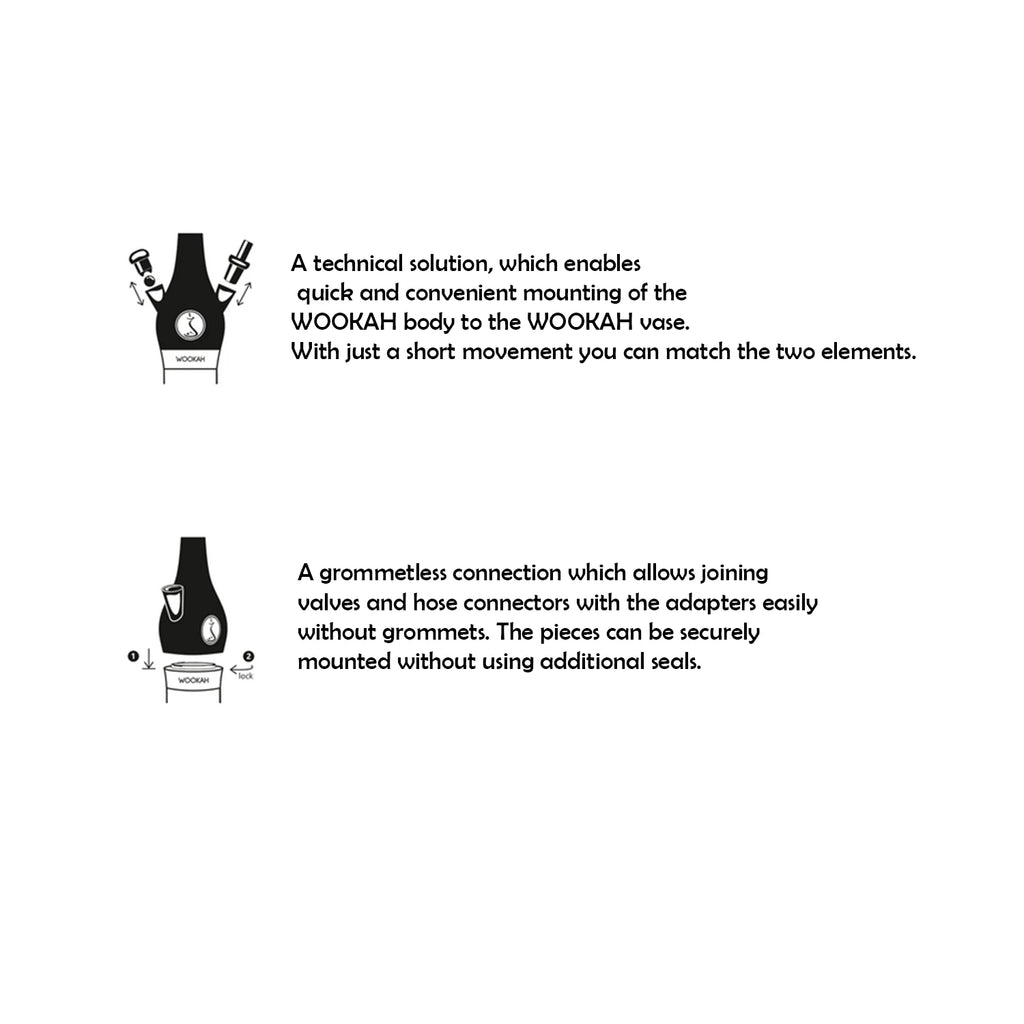 Each WOOKAH includes a quick lock system, a technical solution, which enables quick and convenient mounting the WOOKAH body to the WOOKAH vase. With just short movement you can match the two elements.